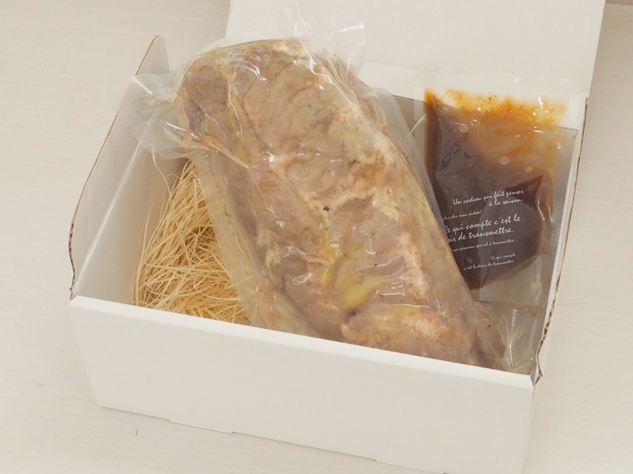 ローストポークと3種のソースは、ギフト用ボックスにお入れします。