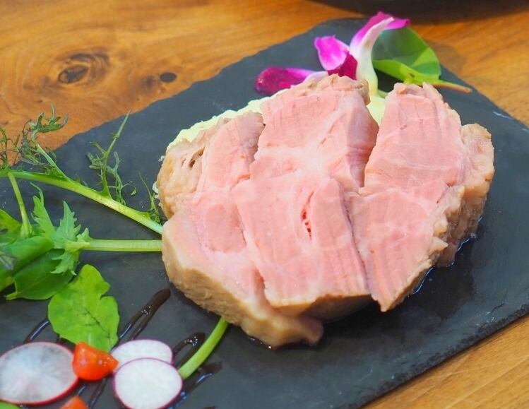 シェフが厳選したお肉は、四季折々の豊かな自然と、雪解けのやさしい水に育まれた「山形豚」。